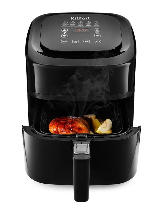 Kitfort, 4.5 кг, аэрогриль, Аэрогриль оснащен электронным управлением, он имеет 8 автоматических программ и дисплей. Продукты го