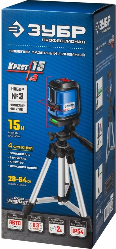 Нивелир "Зубр" КРЕСТ-15 лазерный , суперкомпакт(34902-3_z01)
