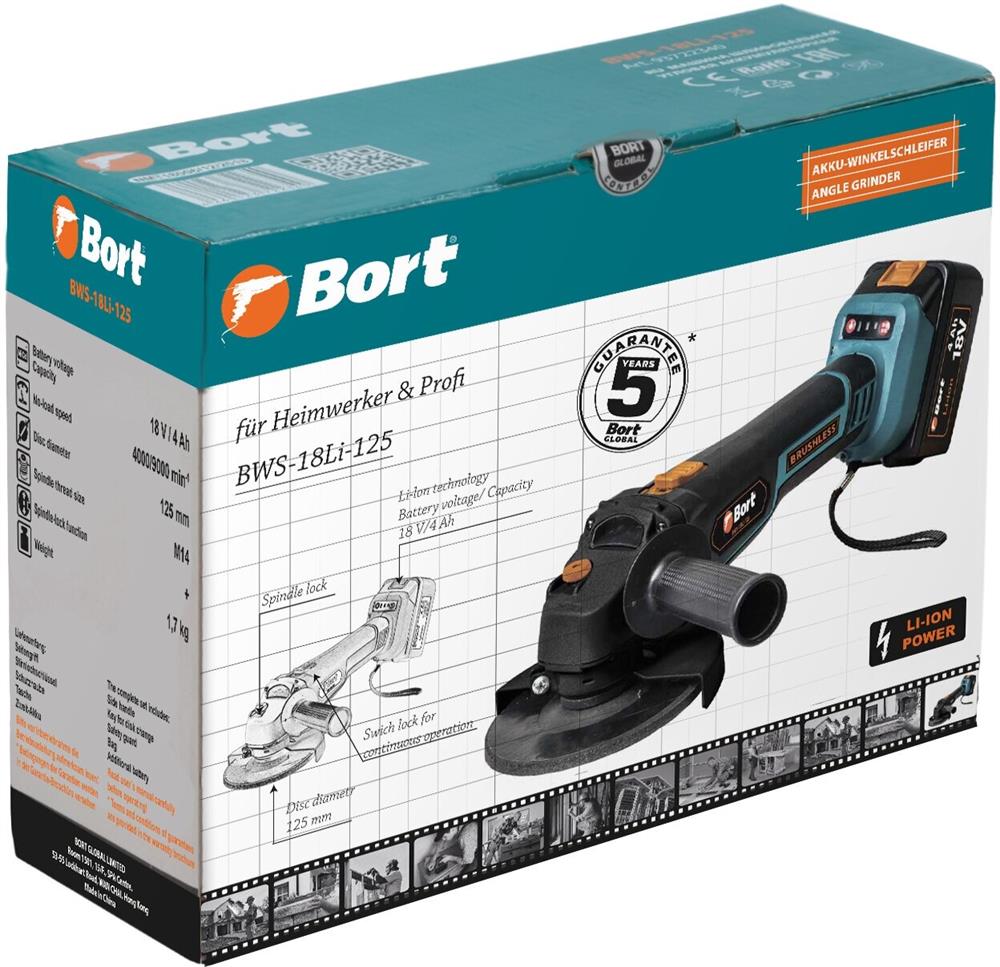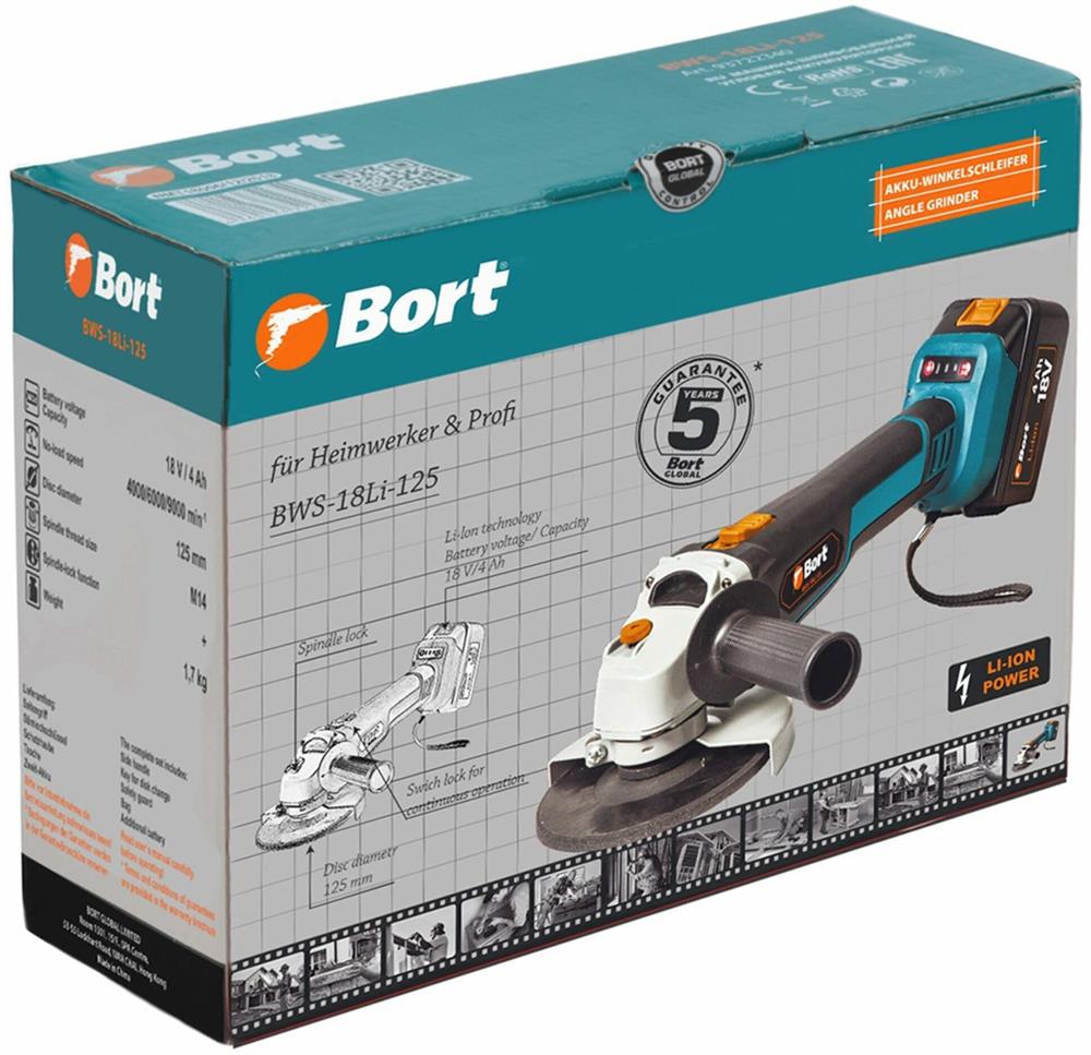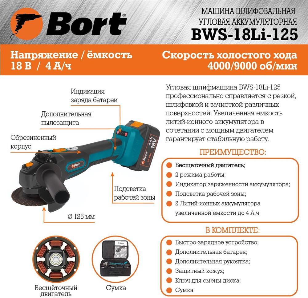 Углошлифовальная машина "Bort" BWS-18Li-125 аккум.