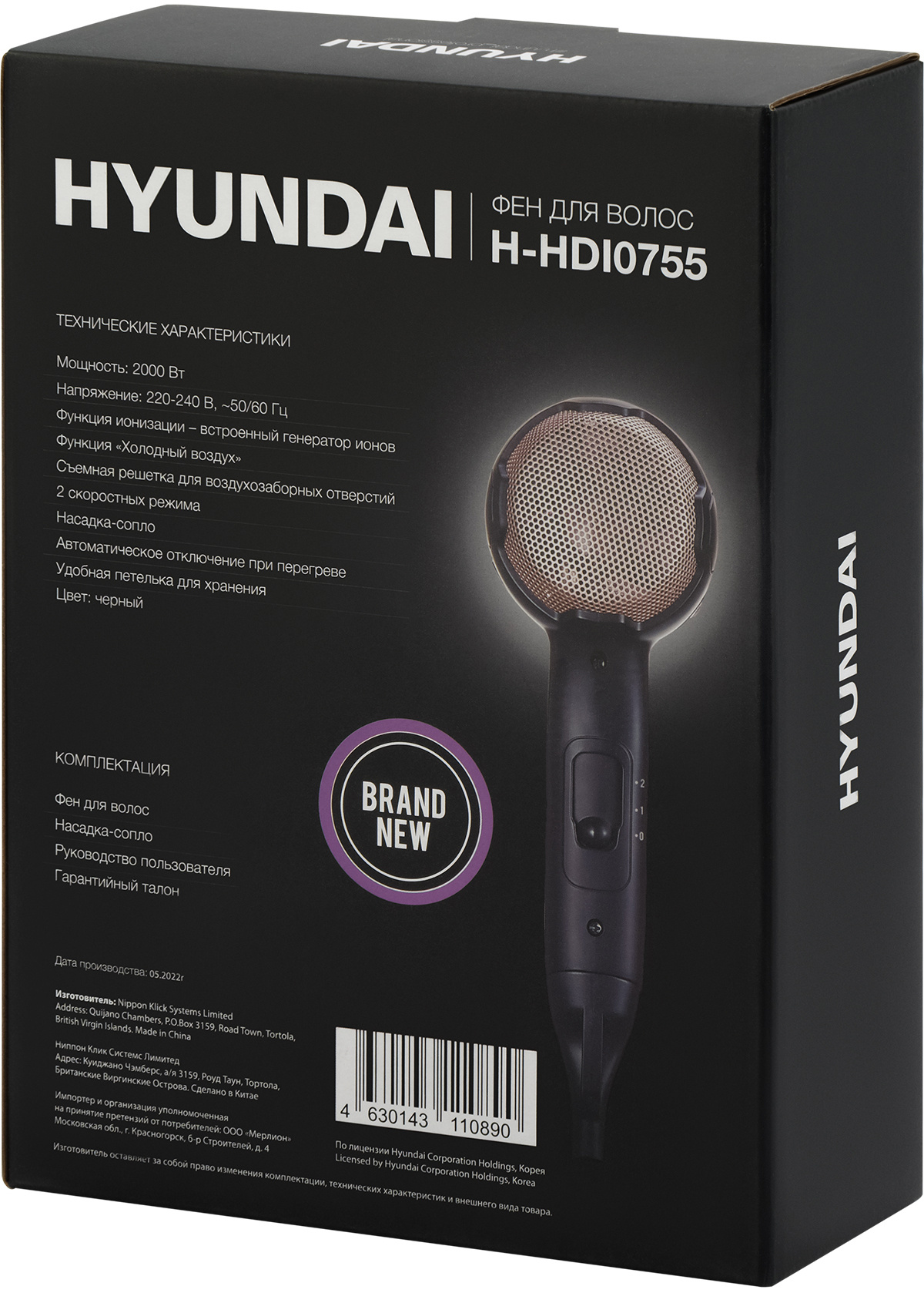 Фен "Hyundai" H-HDI0755
