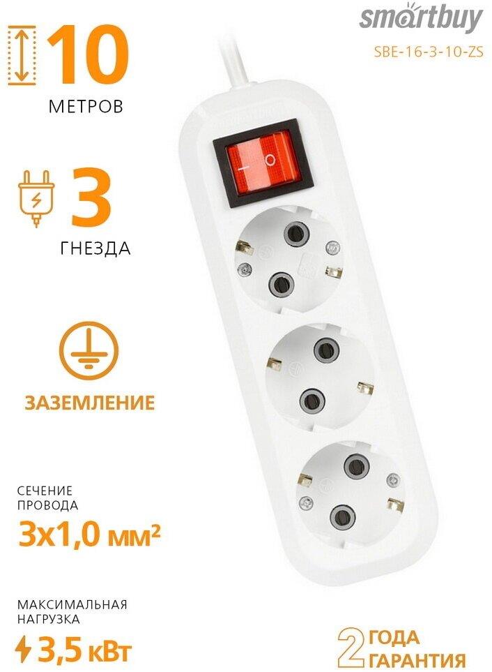 Удлинитель "SmartBuy" (SBE-16-3-10-ZS) 3 гнз х 10 м (16А/3.5кВт, ПВС 3х1.0)