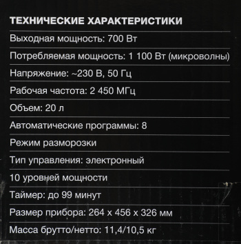 | Мощность микроволн | 700 |