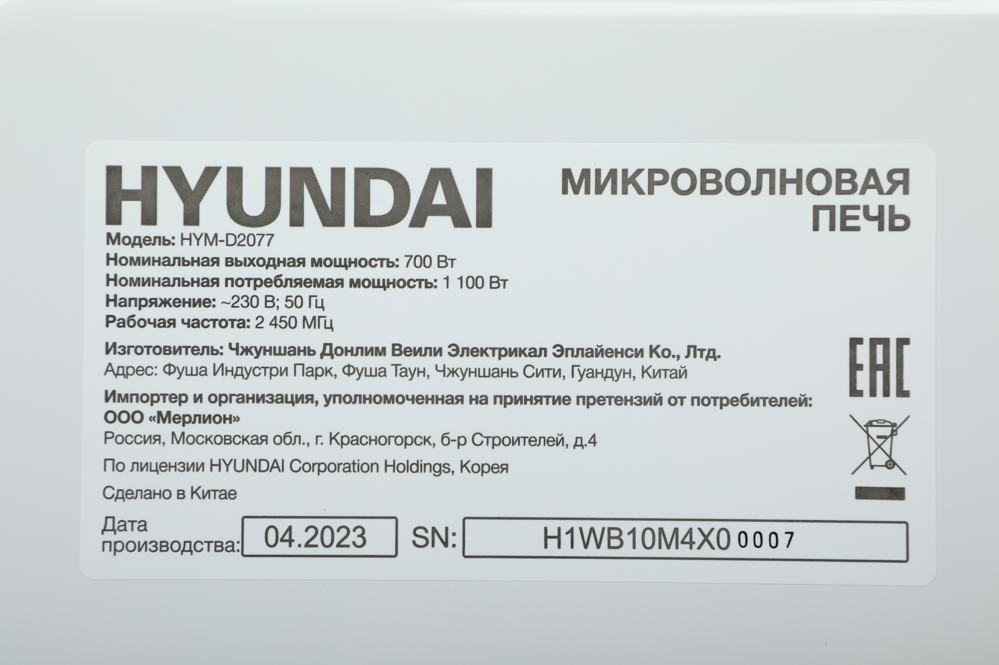 СВЧ-печь "Hyundai" HYM-D2077