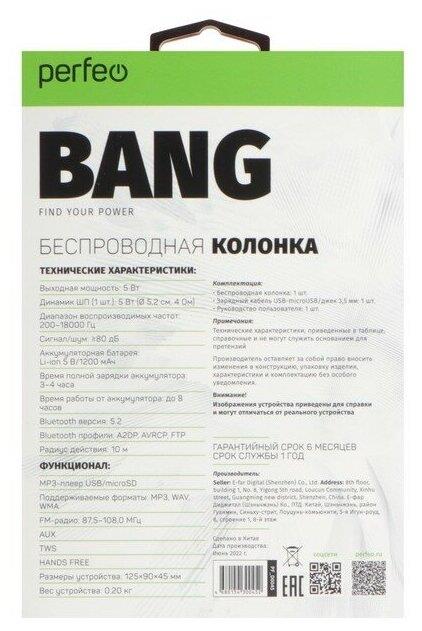 Портативный динамик "Perfeo" (PF_D0045) "BANG