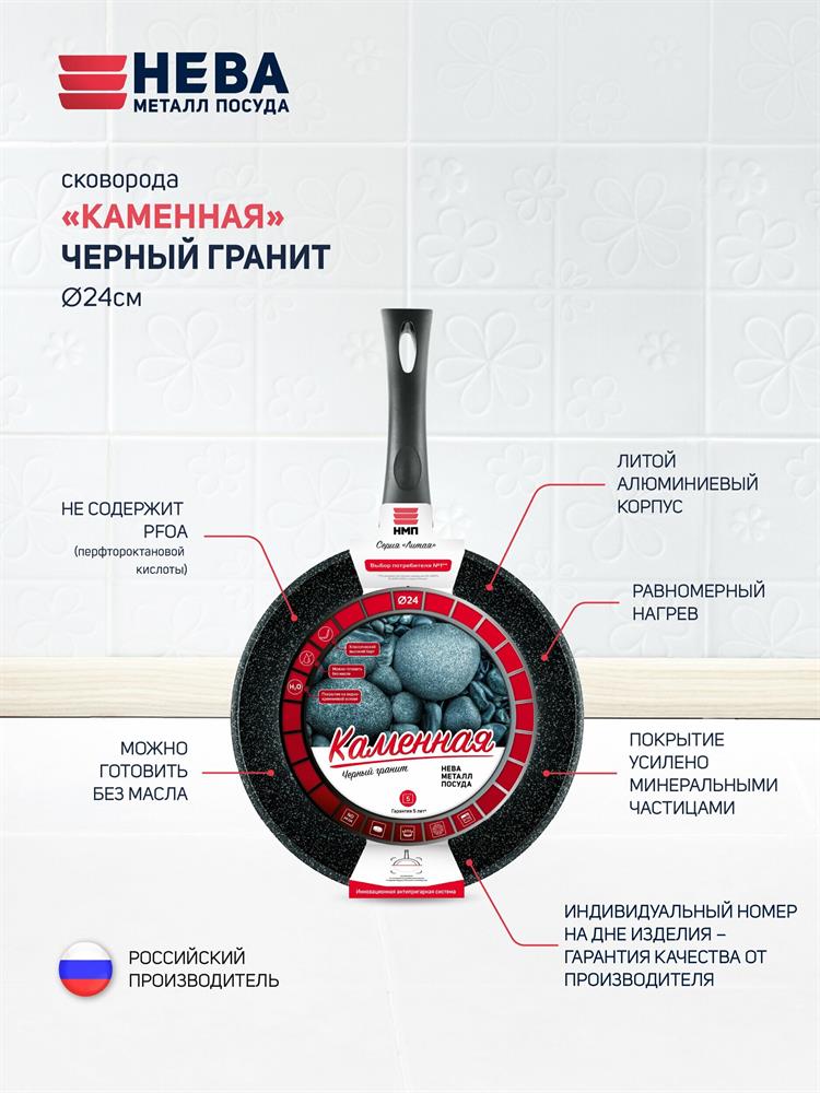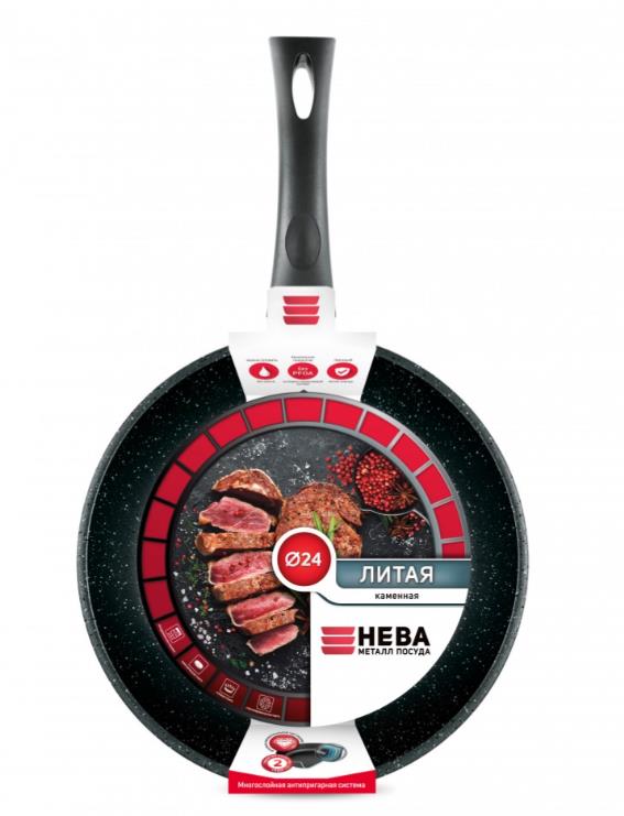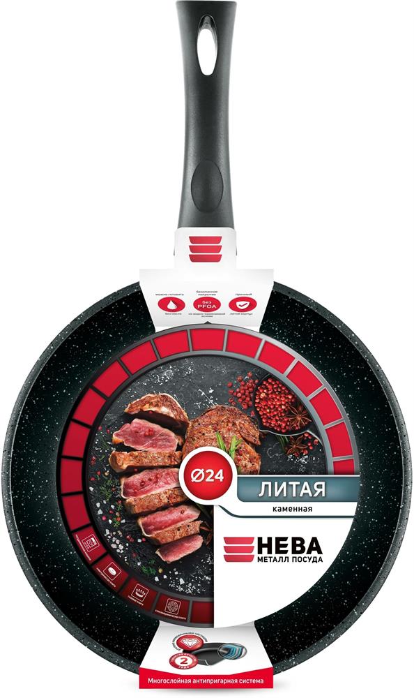 Сковорода "Нева Металл Посуда" 18124 а/пр литая 24см Черный гранит
