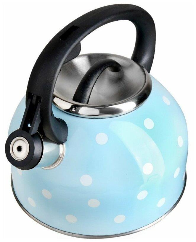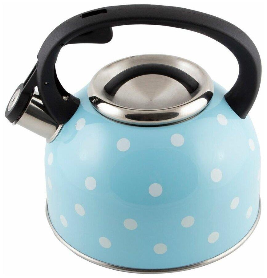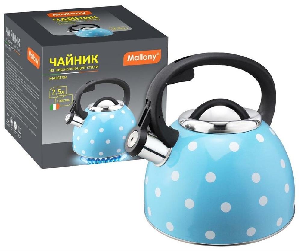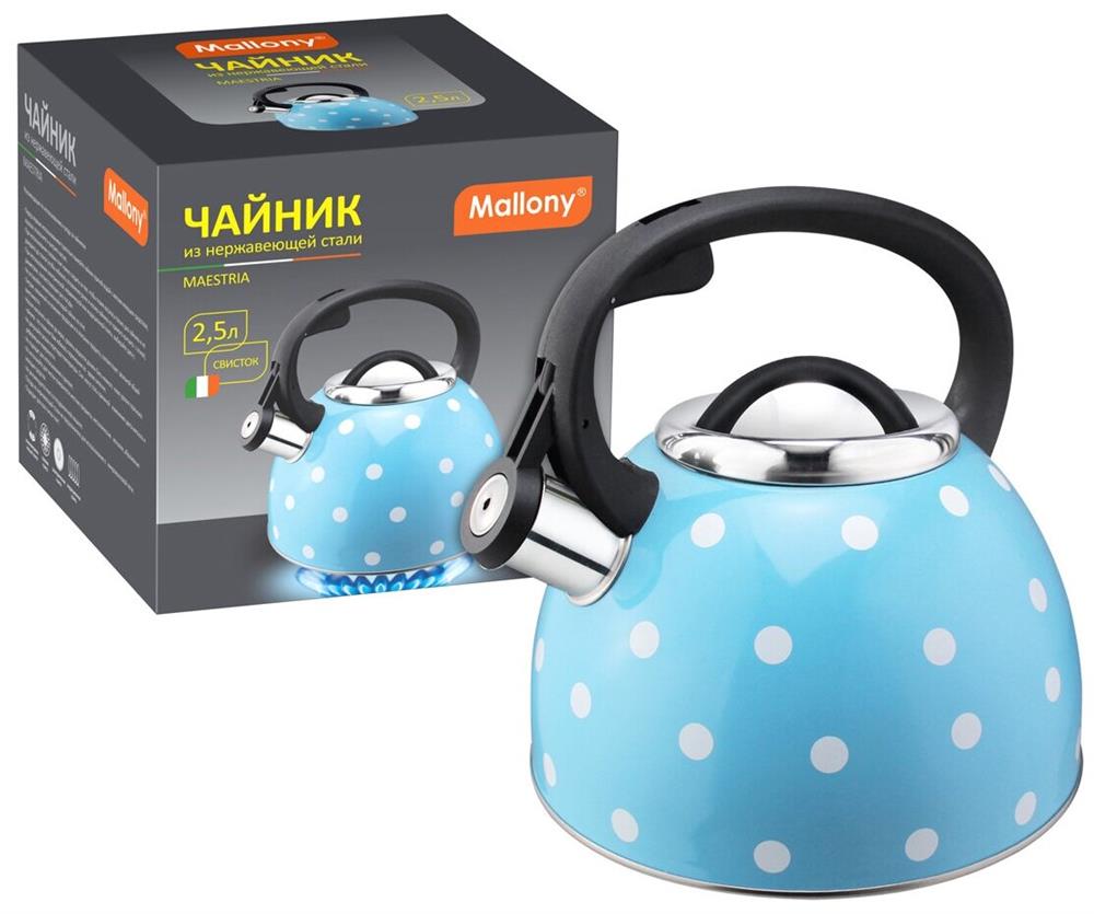 Чайник "Mallony" "Maestria" из нерж стали со свистком (голубой в белый горошек) 2,5 л