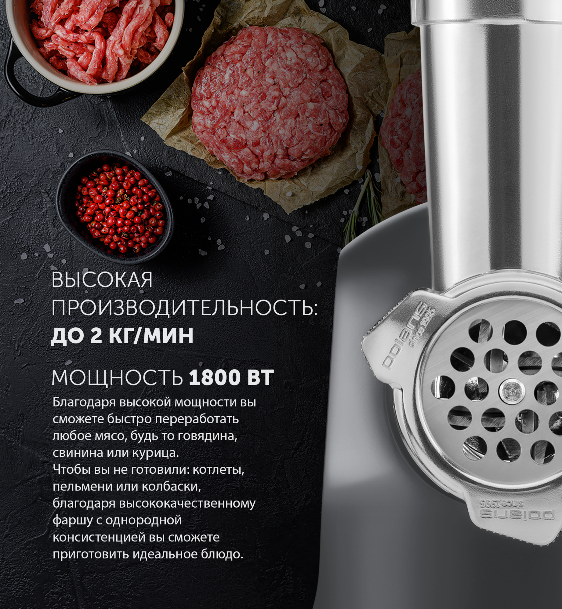 Мясорубка "Polaris" PMG1872 серый