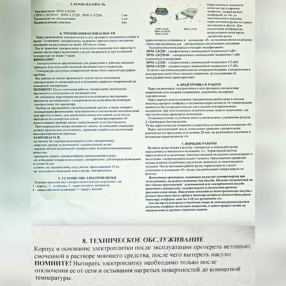 | Число эл. конфорок | 1 |