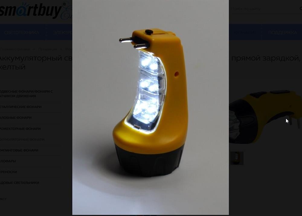 Фонарь "Smartbuy" (SBF-88-Y) 7+8 LED с прямой зарядкой