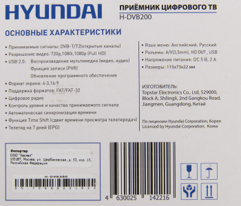 Ресивер-тюнер DVB-T2 "Hyundai" H-DVB200