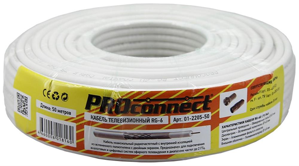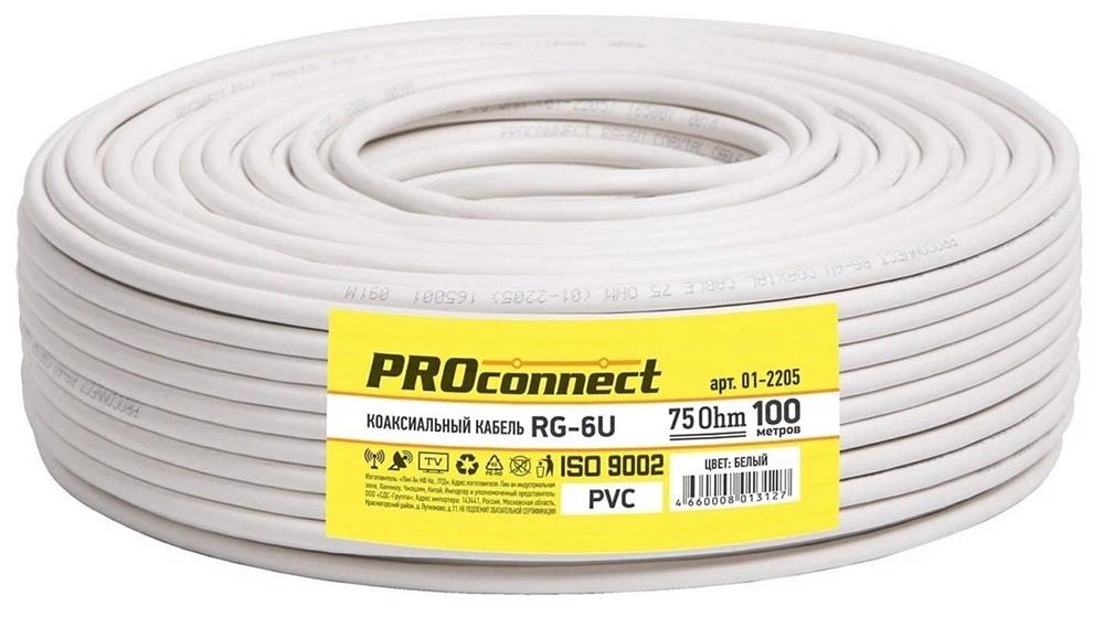 Коаксильный кабель "Proconnect" (01-2205-1) RG-6U, CCS/AL/AL, 48%, 75 ОМ, бухта 100 М, черный