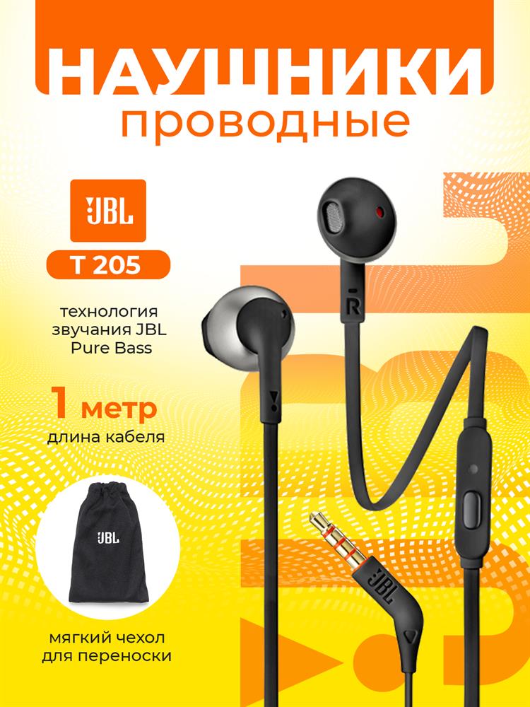 Наушники "JBL" TUNE 205 BLACK (JBLT205BLK) [ПИ]