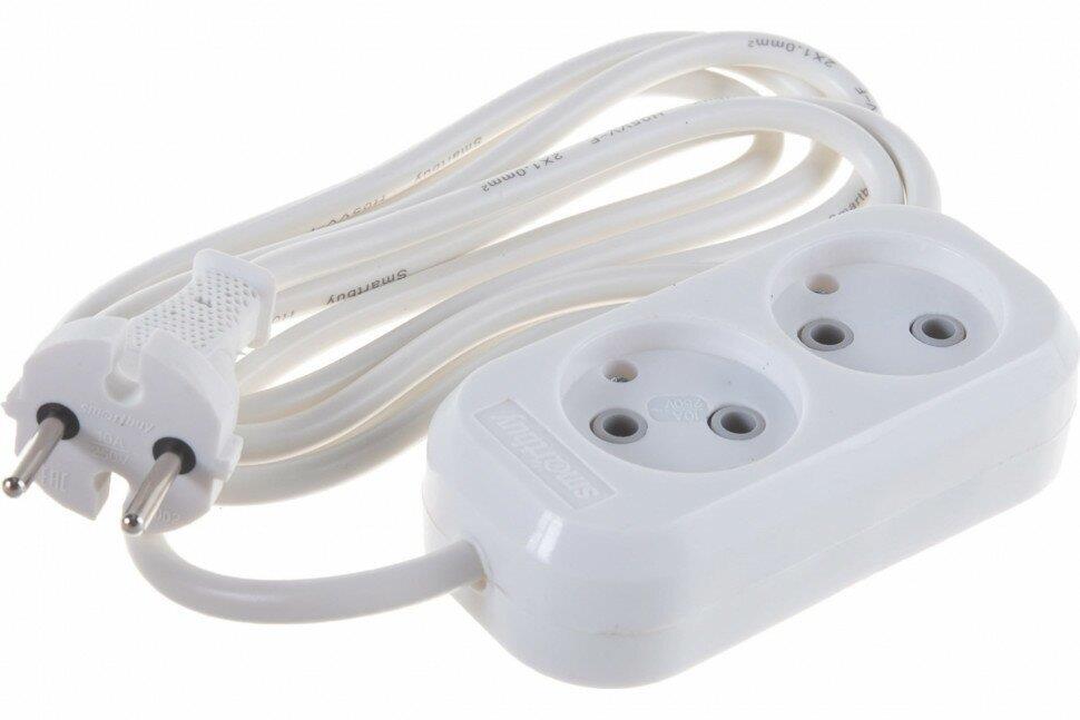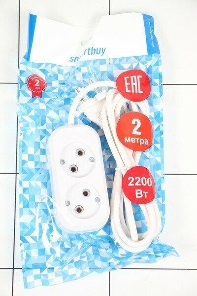 Удлинитель без заземления "SmartBuy" SBE-10-2-02-N 2 гнезда 2 метра (10А/2.2кВт, ПВС 2х1.0)