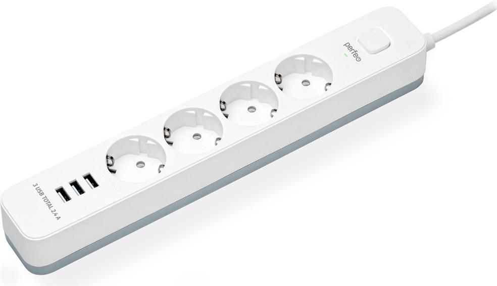 Сетевой фильтр "Perfeo" (PF_C3955) POWER STREAM - 4 роз - 2,0 м - белый