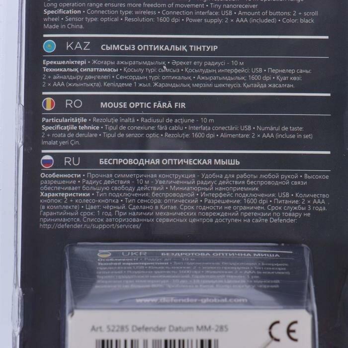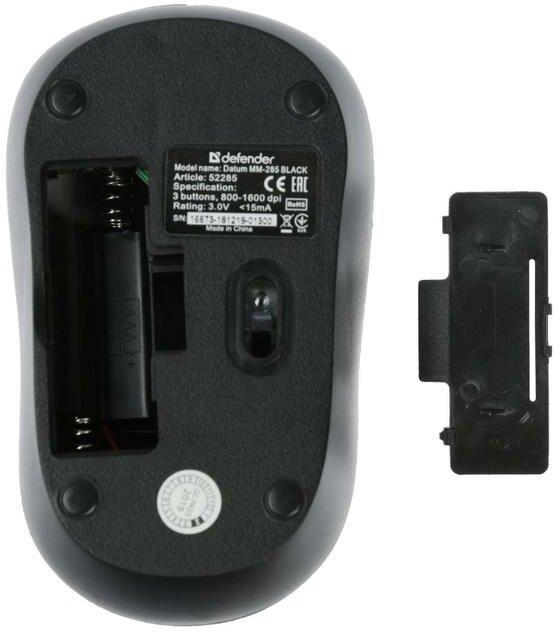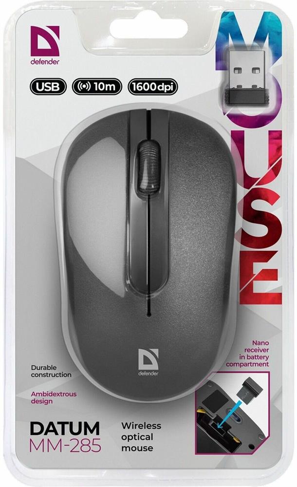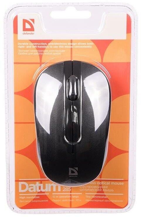 Мышь "Defender" Datum MM-285 черный опт. беспр. 3 кнопки (52285)