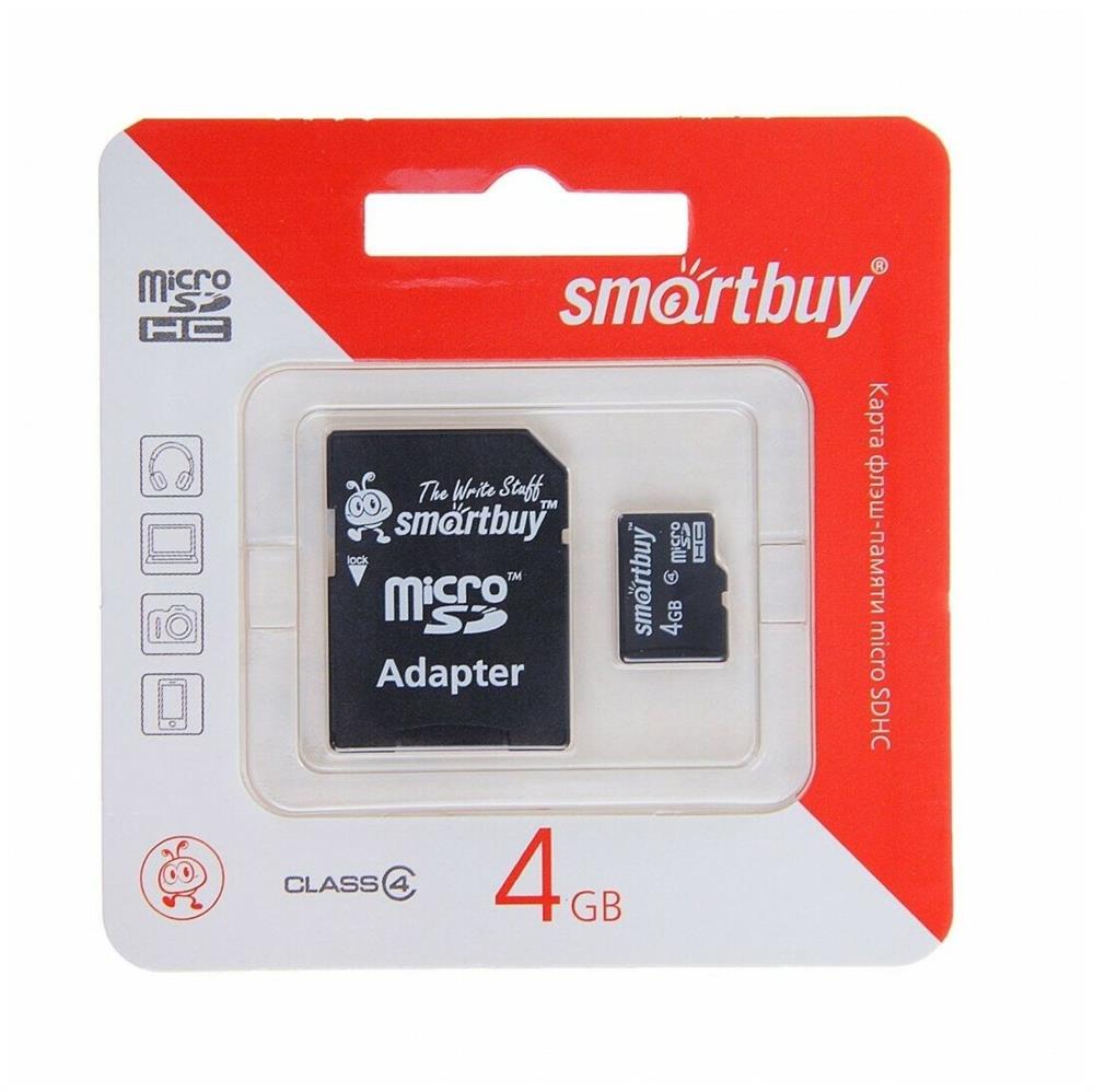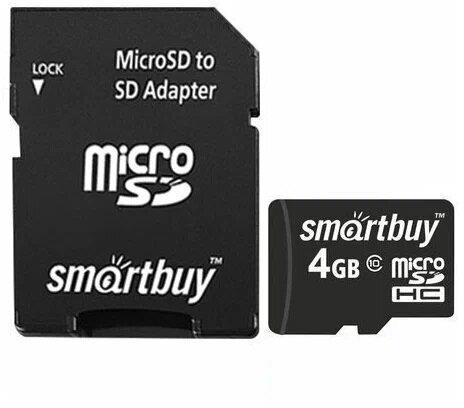 Карта памяти "Smartbuy" MicroSDHC 4GB Class10 + адаптер