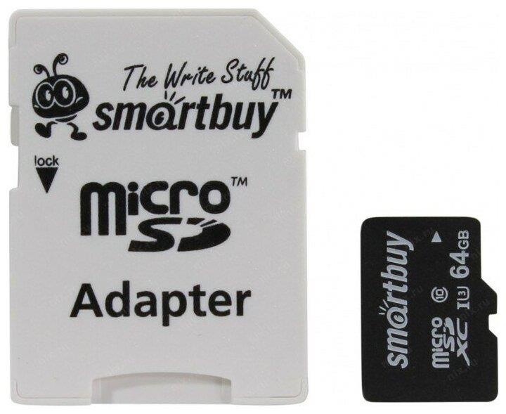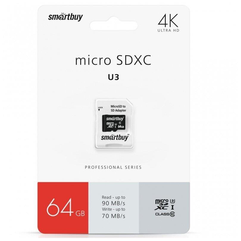Карта памяти "Smartbuy" (SB64GBSDCL10U3-01) MicroSDXC 64GB Class10 PRO (U3) 95/60 MB/S + адаптер