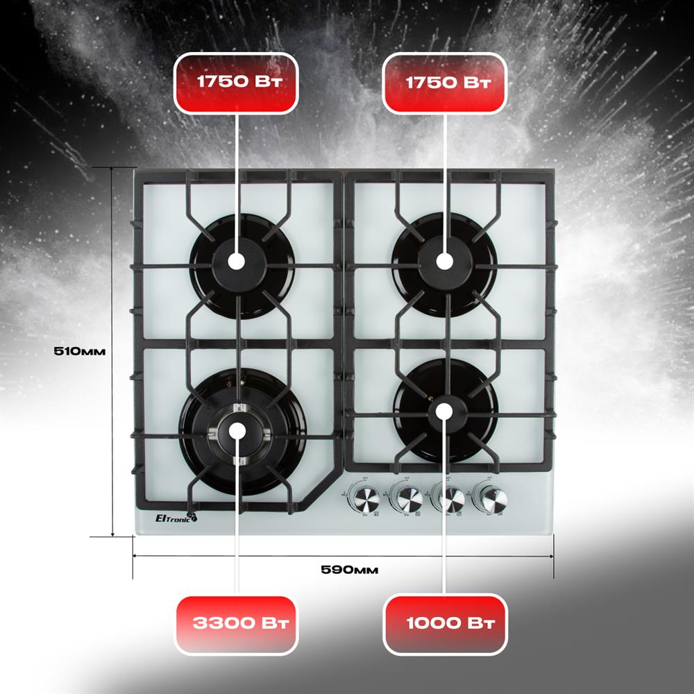 Встраиваемая поверхность "Eltronic" (33-03) 4 конфорки , белый