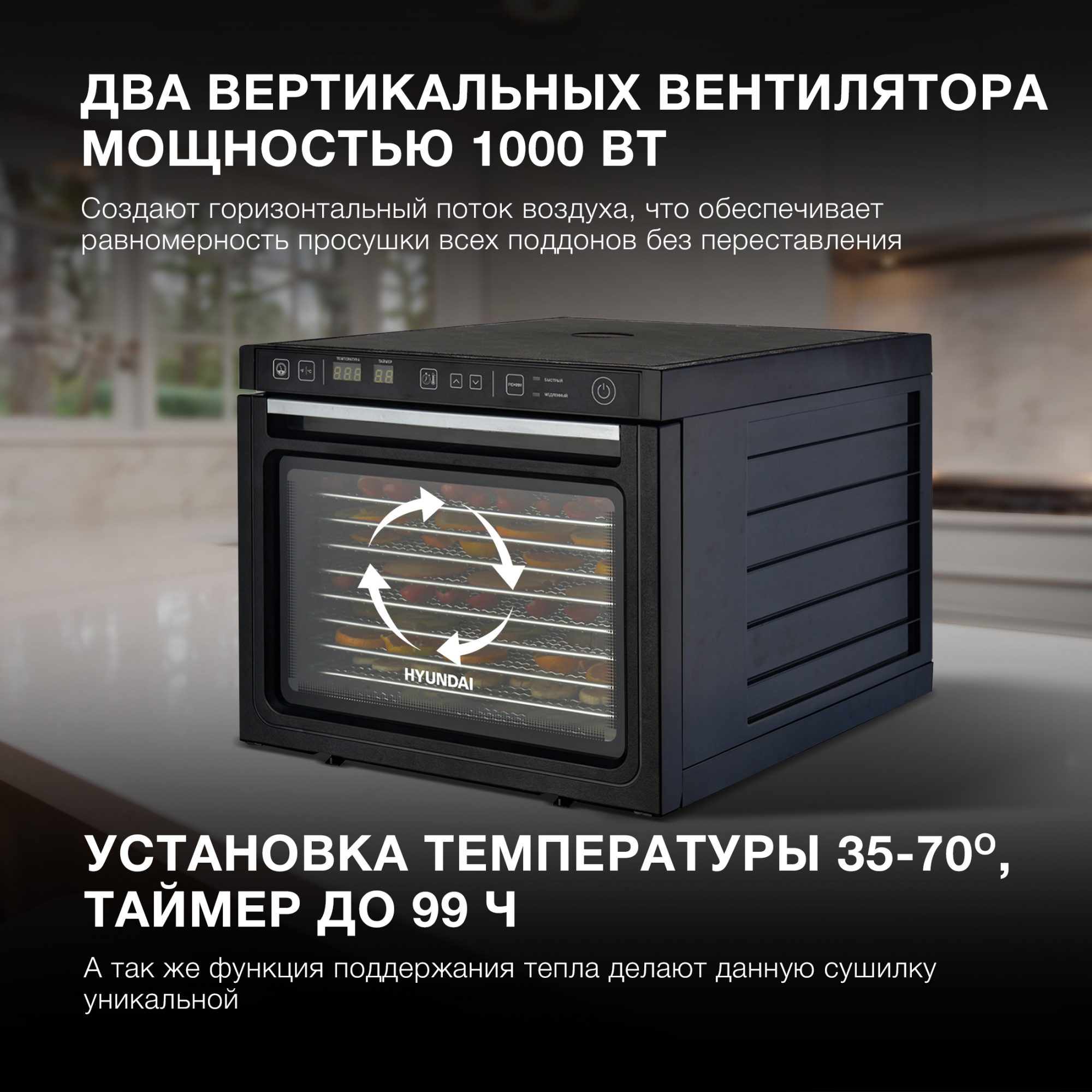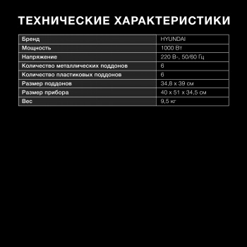 Сушилка для овощей и фруктов "Hyundai" HYDF-6034