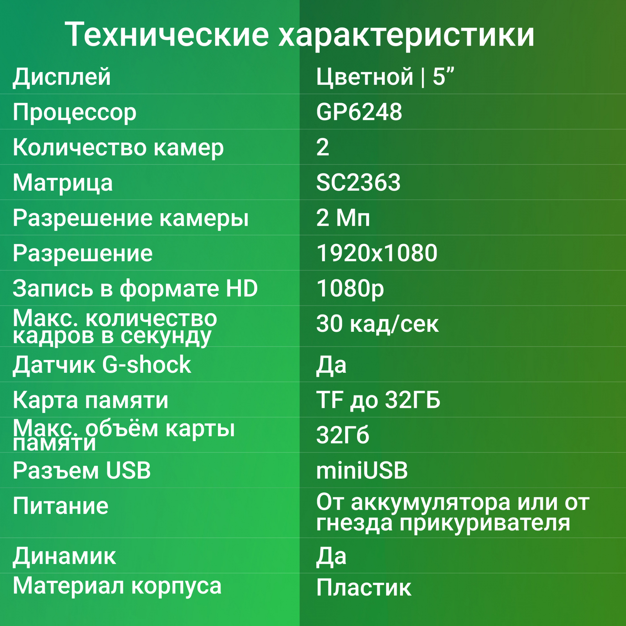 | Количество камер (Видеорегистраторы) | 2 |