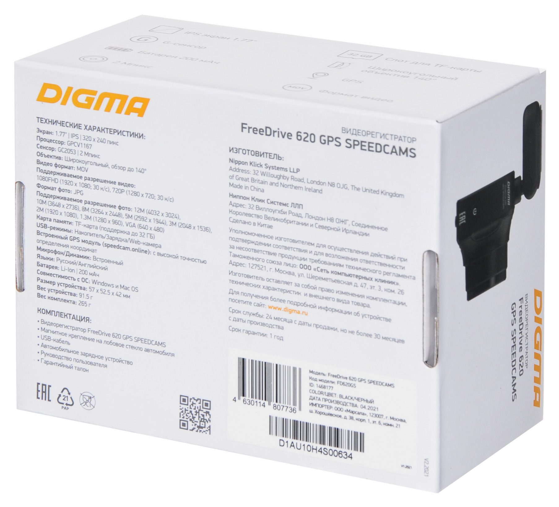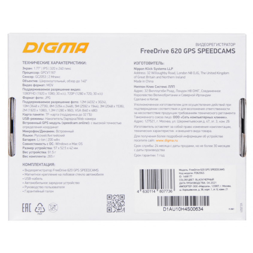 Видеорегистратор "Digma" FreeDrive 620 GPS