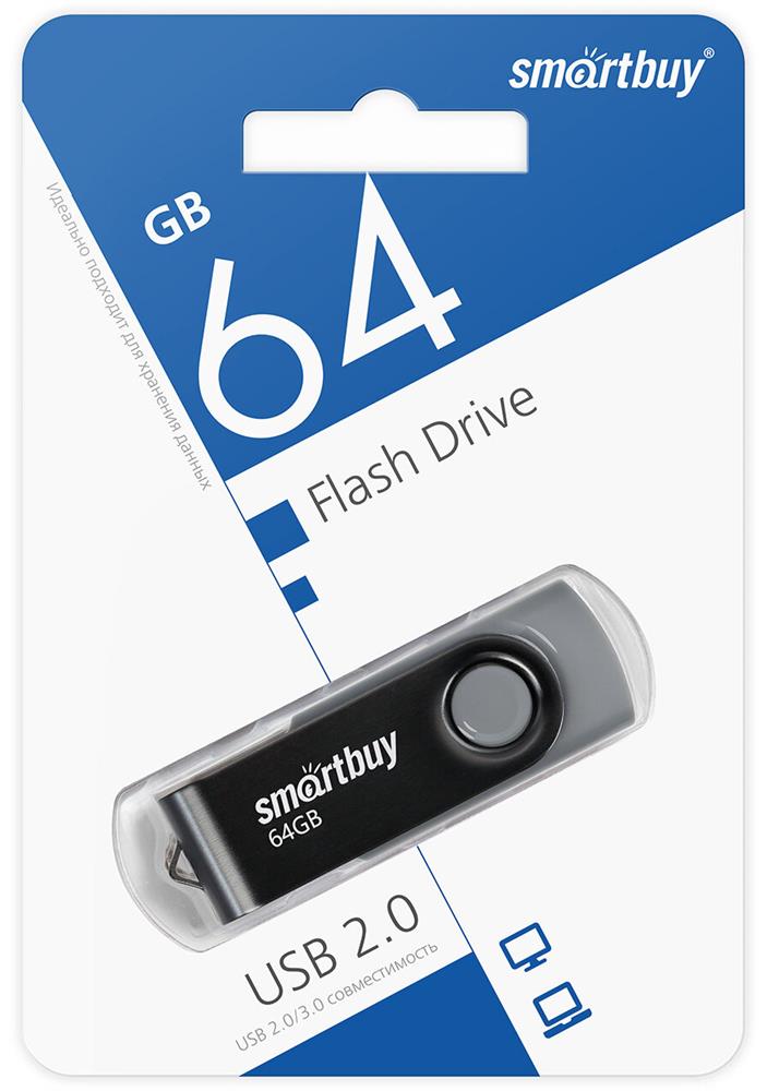 Флеш-диск "Smartbuy" (SB064GB2TWK) UFD 2.0 064GB Twist Black черный