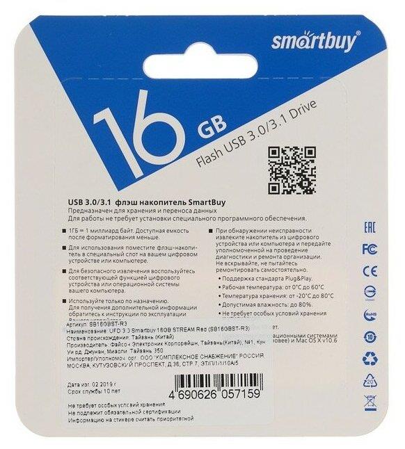 Флеш-диск "Smartbuy" (SB16GBST-R3) 16GB STREAM RED USB3.0