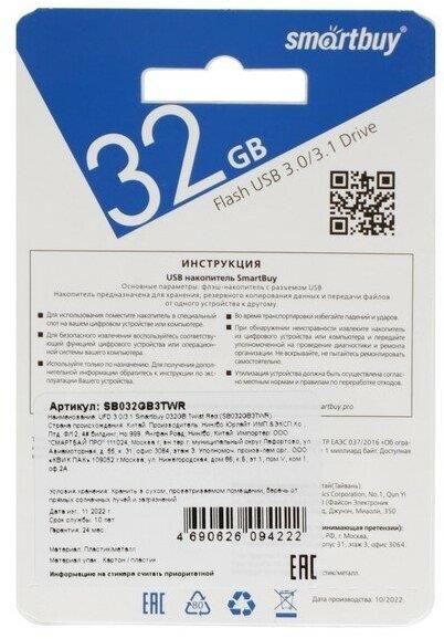 Флеш-диск "Smartbuy" (SB032GB3TWR) UFD 3.0/3.1 032GB Twist Red красный