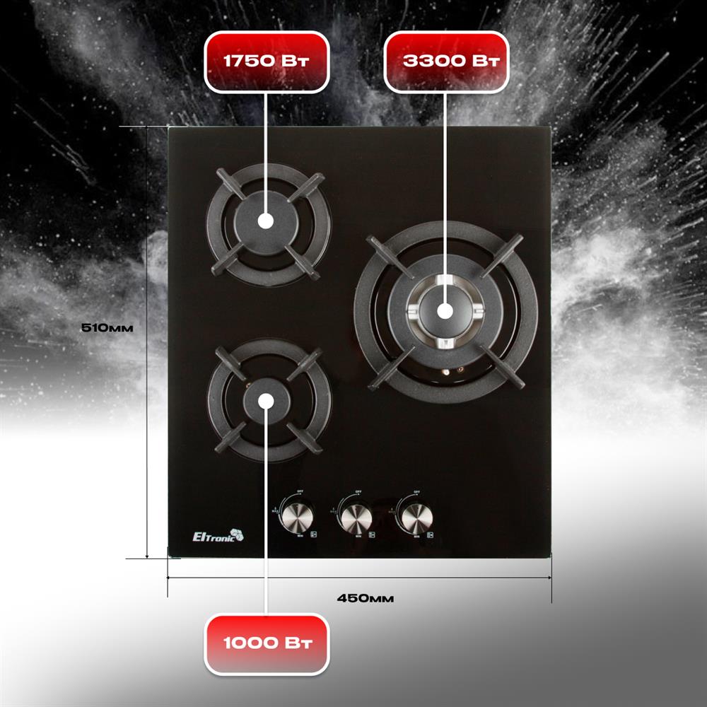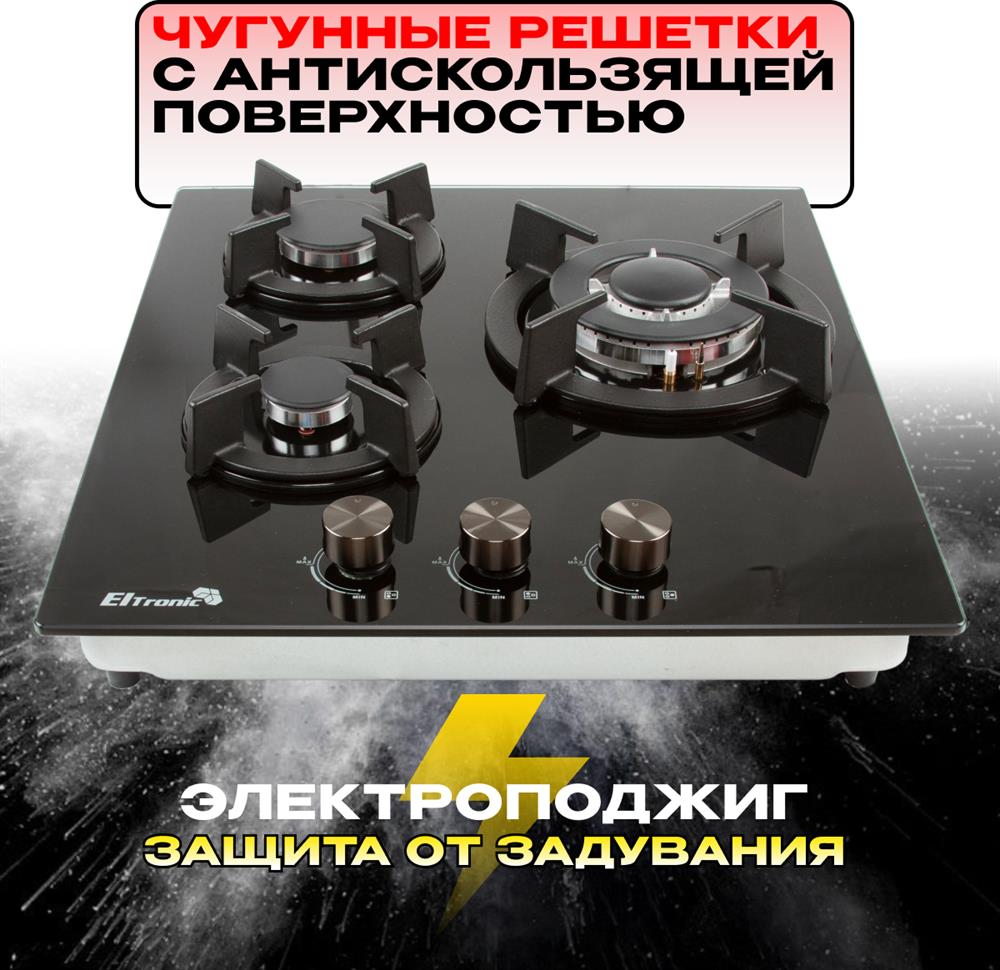 Встраиваемая поверхность "Eltronic" (33-10) 3 конфорки , черный