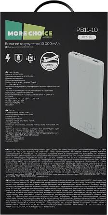 Мобильный аккумулятор "MORE CHOICE" (4610196408694) PB11-10 White 10000mAh 2USB