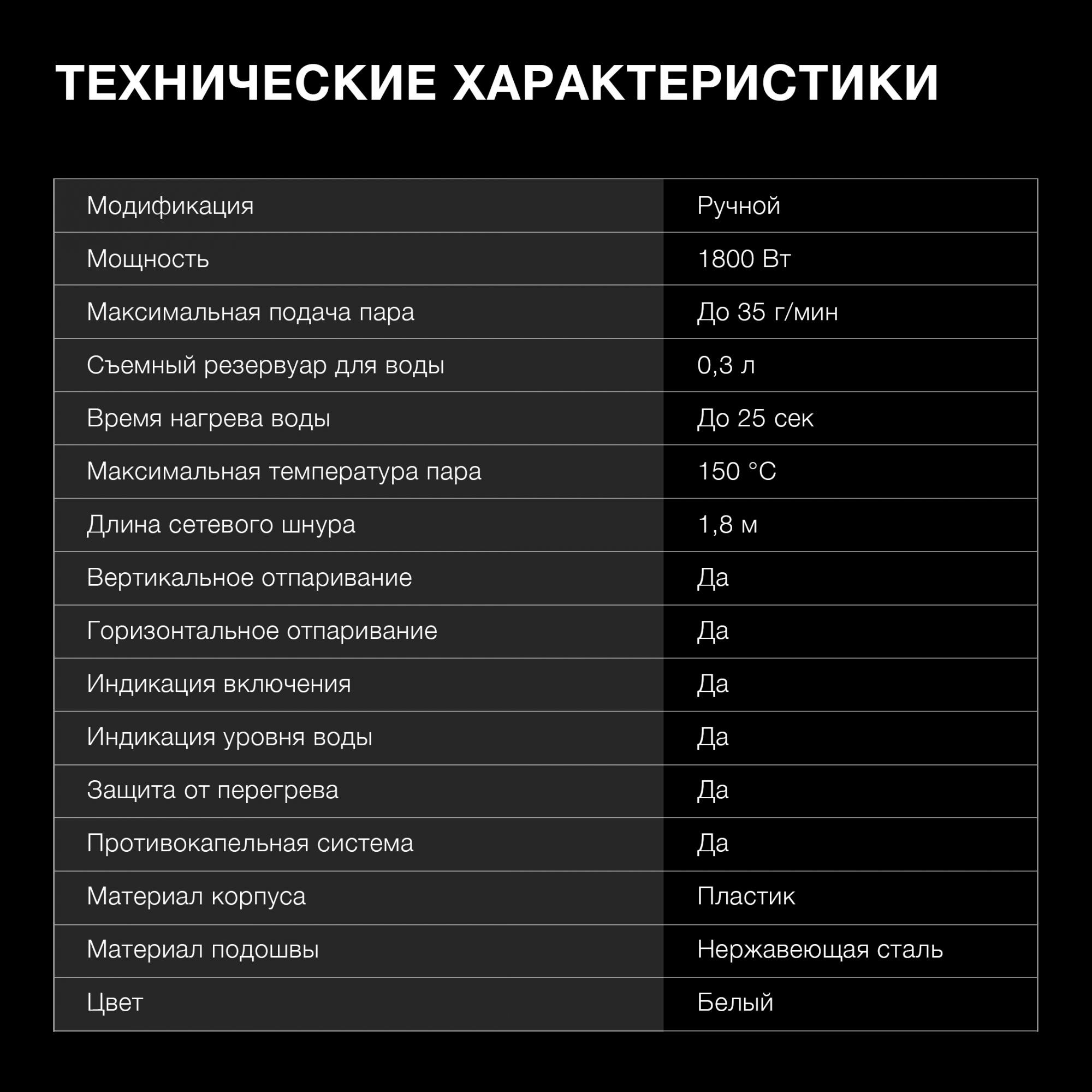 | Съемный резервуар для воды (Отпариватели и пароочистители) | ДА |