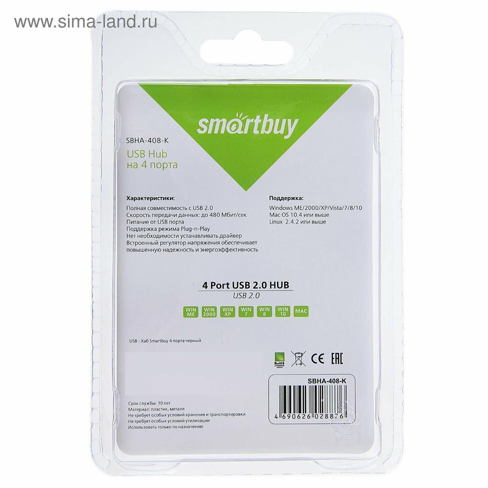 USB-хаб "Smartbuy" (SBHA-408-K) 4 порта черный