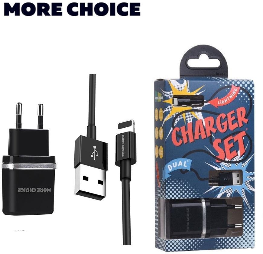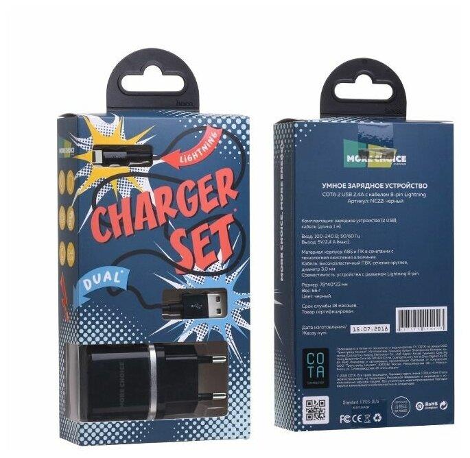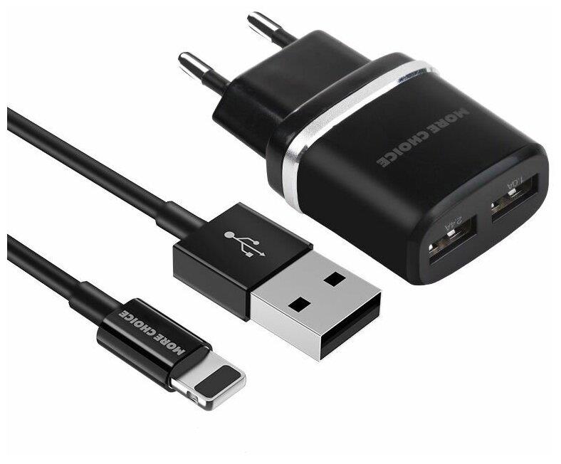Адаптер питания "MORE CHOICE" (4627151190013) NC22i СЗУ 2USB 2.4A для Apple 8-pin Black