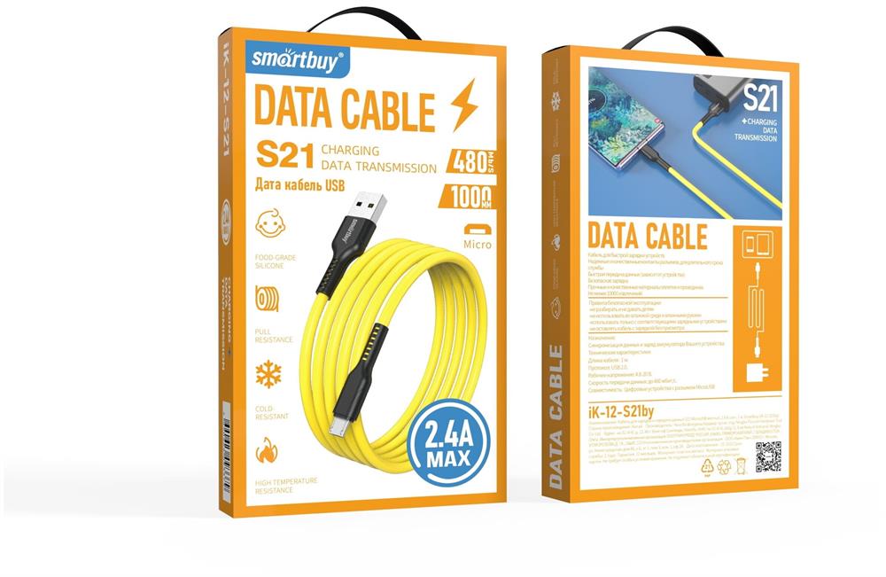Кабель "Smartbuy" (iK-12-S21by) S21 MicroUSB желтый, 2.4 А, сил., 1 м