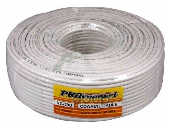 Кабель "Proconnect" (01-2621) RG-59U, 75 ОМ, CCS/AL/AL, 48%, бухта 100 м - белый