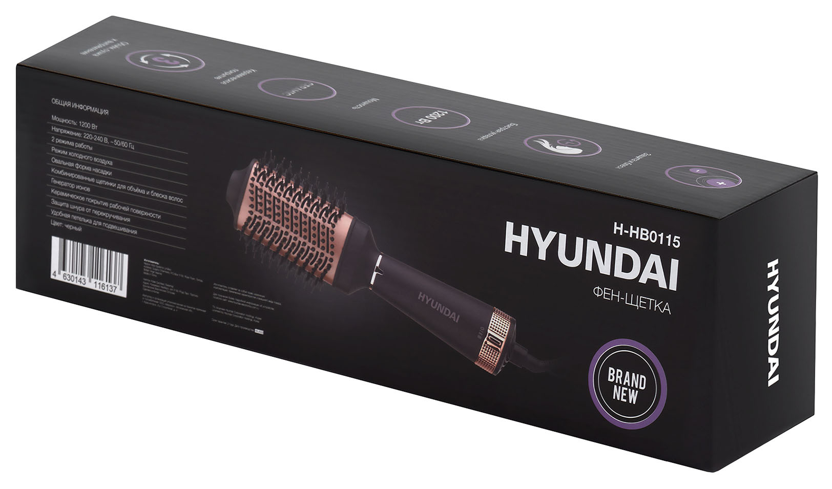 Фен-щетка "Hyundai" H-HB0115 черный
