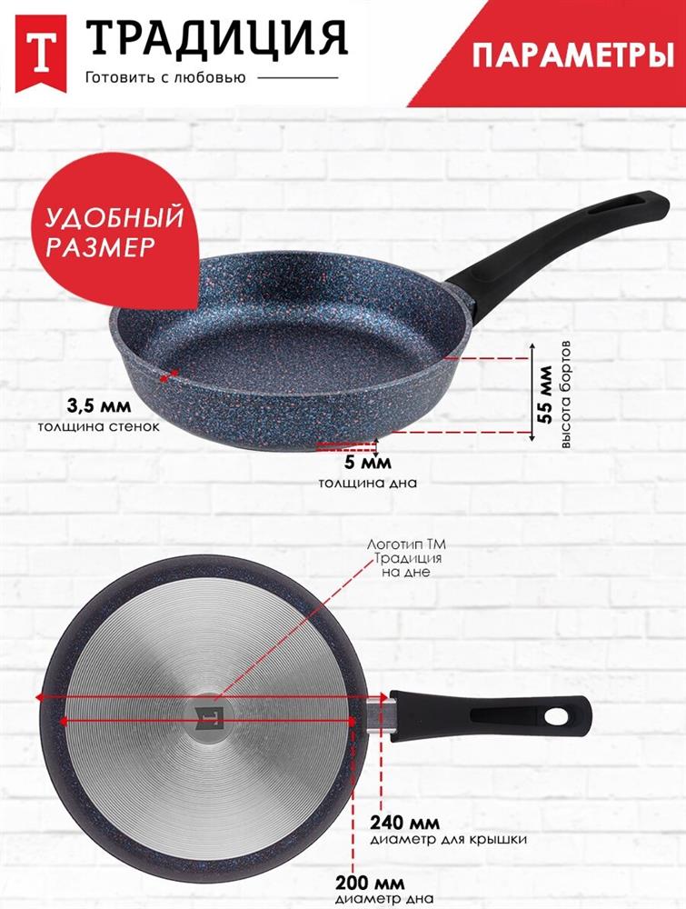 | Толщина стенок (Сковороды) | 3.5 мм |