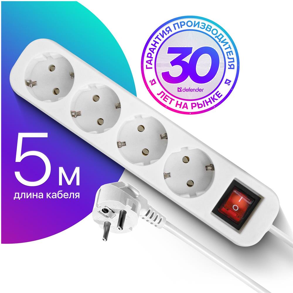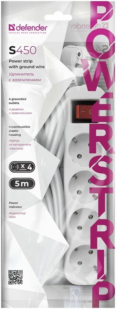 Сетевой фильтр "Defender" (99239) S450 - 4 розетки - 5,0 m