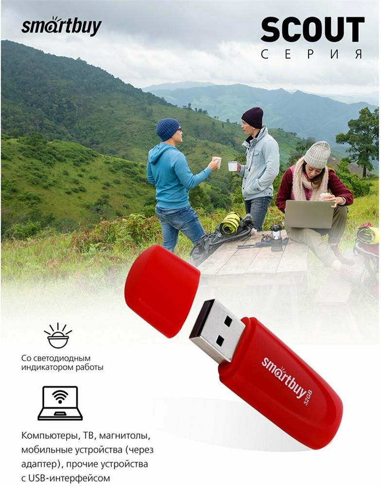Флеш-диск "Smartbuy" (SB032GB2SCR) UFD 2.0 032GB Scout Red красный