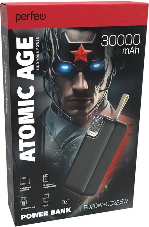 Мобильный аккумулятор "Perfeo" Powerbank Atomic Age 30000 mAh/LED дисплей/PD + QC 3.0/Type-C/
