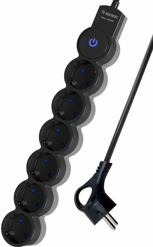 Удлинитель "Космос" YKsm3m-6g-Z-V10A-B Черный/серый