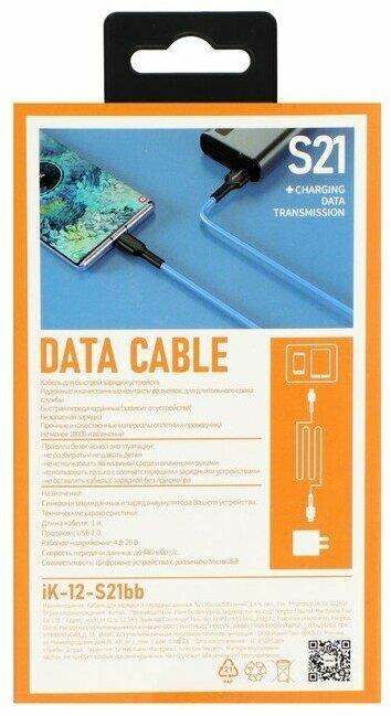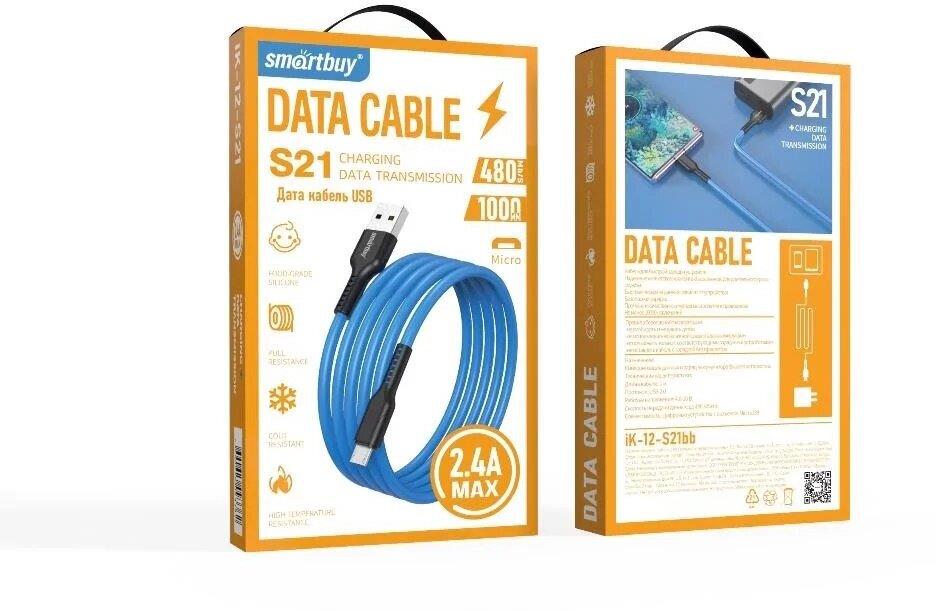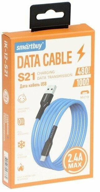 Кабель "Smartbuy" (iK-12-S21bb) S21 MicroUSB синий, 2.4 А, сил., 1 м