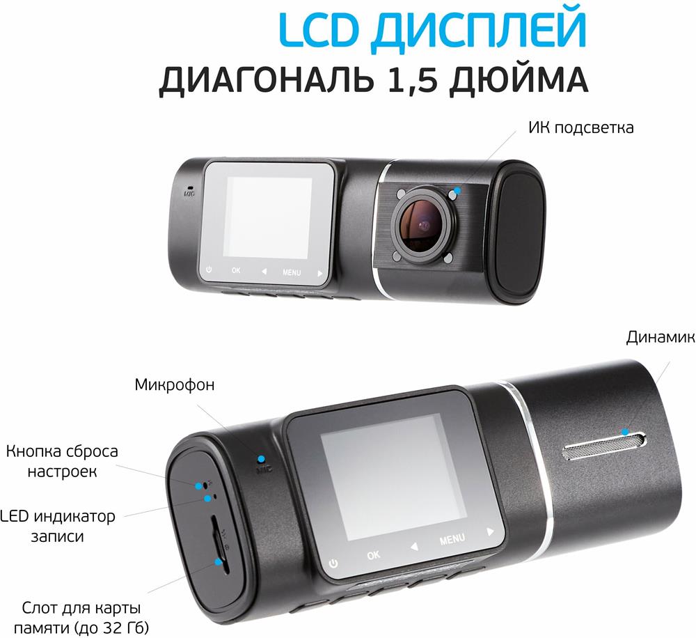 | Звук (Видеорегистраторы) | встроенный микрофон (с возможностью отключения), встроенный динамик |