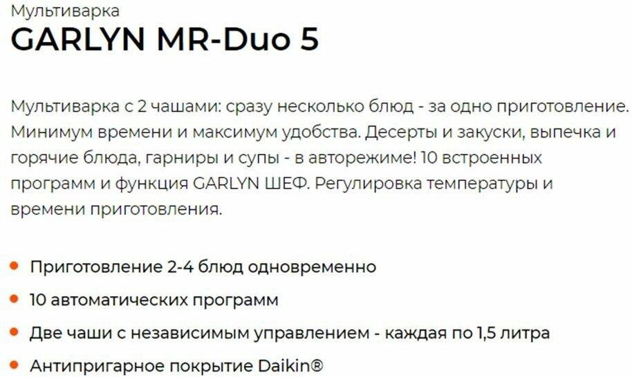 Мультиварка "Garlyn" MR-Duo 5