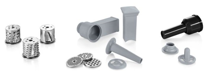 | Насадки (Мясорубки) | насадка-терка, насадка для приготовления колбас, насадка для шинковки, насадка для кеббе, диск для ф |